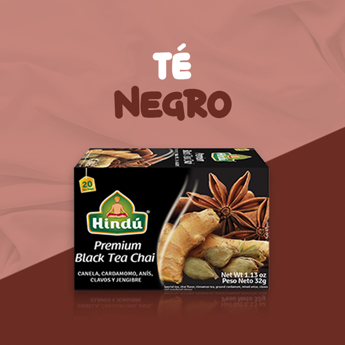 Mezcla de té negro con diferentes especias como canela, cardamomo, anís, clavos y jengibre en polvo.